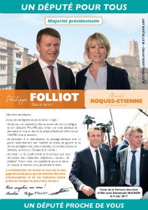 A l’occasion du premier tour des élections législatives du mois de juin 2017, Philippe FOLLIOT et Muriel ROQUES-ETIENNE ont préparé une profession de foi distribuée à tous les habitants de la première circonscription du Tarn.
