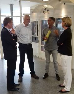 Le mardi 30 mai, après avoir participé à l’enregistrement du débat sur France 3 et répondu à l’invitation des agriculteurs à Montans, Philippe FOLLIOT, en compagnie de sa candidate suppléante Muriel ROQUES-ETIENNE, a repris le cours de ses visites thématiques sur le territoire de sa circonscription. Au Centre de Formation des Apprentis de Cunac, ouvert depuis 2006, ils ont été reçus par Jean-Louis HORMIERE, Président de la Chambre des métiers, et Michel BEAUBOUCHER, Directeur de l’école. Ceux-ci leur ont fait faire un tour complet des infrastructures et leur ont présenté quelques-uns des acteurs du quotidien de cet établissement chargé de la formation d’un millier de jeunes en formation initiale ou plus âgés en reconversion. Malgré la période d’examens, ils ont pu échanger avec les étudiants, les professeurs ainsi que leurs clients, au salon de coiffure notamment. Les riches discussions ont vite relié l’activité du centre de formation au programme ambitieux du nouveau Président de la République, Emmanuel MACRON, sur le champ de l’apprentissage. Philippe FOLLIOT et Muriel ROQUES-ETIENNE sont repartis avec un dossier complet relatif aux métiers préparés sur le site de Cunac et les formations dispensées partout dans notre département. Ils pourront donc continuer à nourrir leur réflexion et actions futures en la matière.