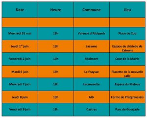 Ouvertes à tous et en plein air (avec possibilité de repli en cas de mauvais temps), ces réunions ne seront pas des réunions publiques traditionnelles. En effet, après une intervention de 20 minutes par Philippe FOLLIOT et Muriel ROQUES-ETIENNE, un échange direct et convivial sera organisé avec les personnes présentes.