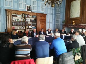 Profitant de la venue de Thierry COSTE, Philippe FOLLIOT et Muriel ROQUES-ETIENNE, pilote des Ateliers du territoire qui visent à identifier et proposer des solutions aux grands blocages de la société française dans le cadre d’un groupe de travail informel constitué par le Président de la République, ont organisé un 4e Atelier du Territoire en mairie de Brassac. Les élus du territoire avaient répondu présent, ainsi qu’un certain nombre de citoyens, parmi lesquels quelques membres de la République en Marche venus échanger avec leurs élus et partager leurs constats et bonnes idées. Lors de cette réunion de travail, il a entre autres été question de certaines règles du bâti sur terrains agricoles, des principes d’uniformité et d’ultra-normativité des règles, des conditions de consommation de l’eau de source, ou des dysfonctionnements de certaines démarches administratives dématérialisées…